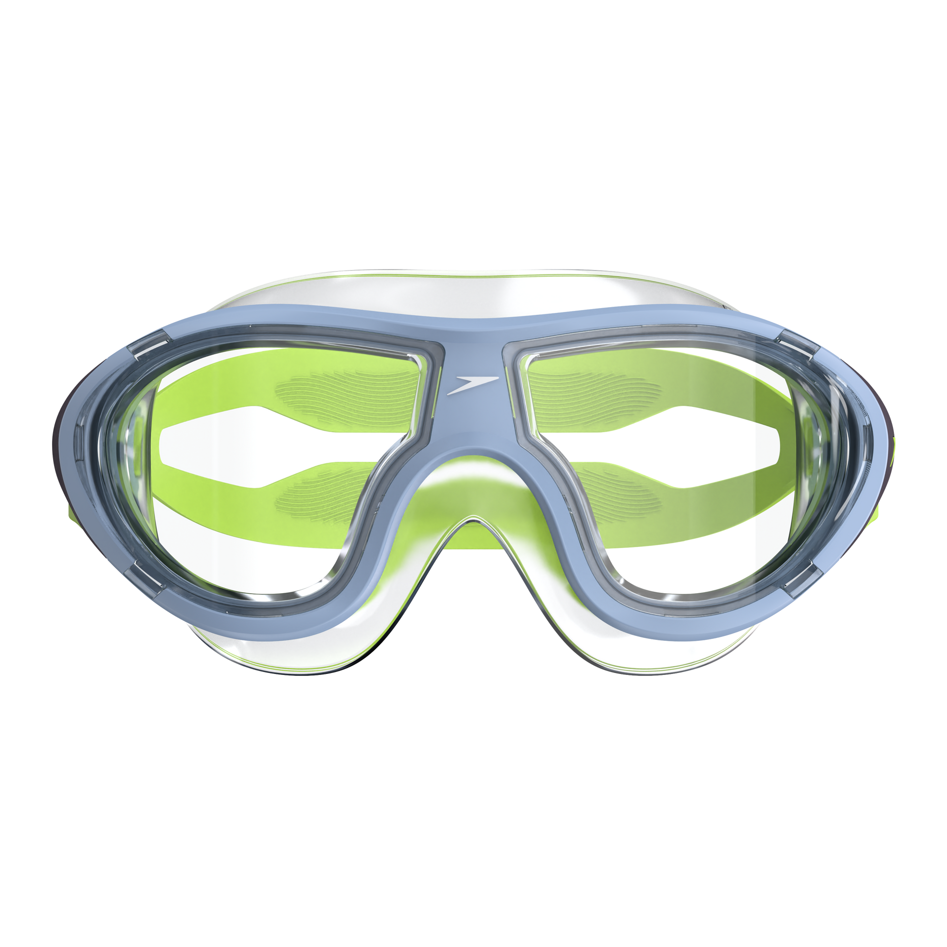 Unique curved lens design offers an expanded field-of-view in a junior sized swim mask.